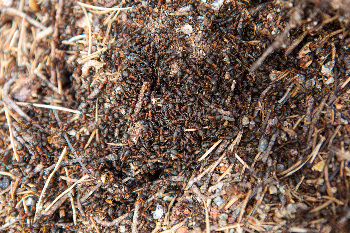 Muurahaisetkin onvat heränneet. Jokin eläin on käynyt kaivelemassa pesistä talvievästä ja nyt on korjaustyöt menossa.