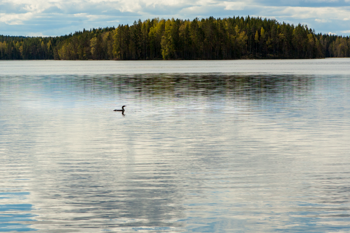 P.S. Toinen varma kesän merkki on se että meikäläinen käy ilman saunaa aamu-uinnilla. Se tulikin tehtyä, mutta kuvassa kuitenkin kuikka!