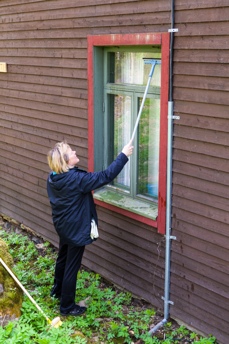 Pirtissä pestään ikkunat. SIsällä siivotaan ja järjestetään viimeisenpäälle.