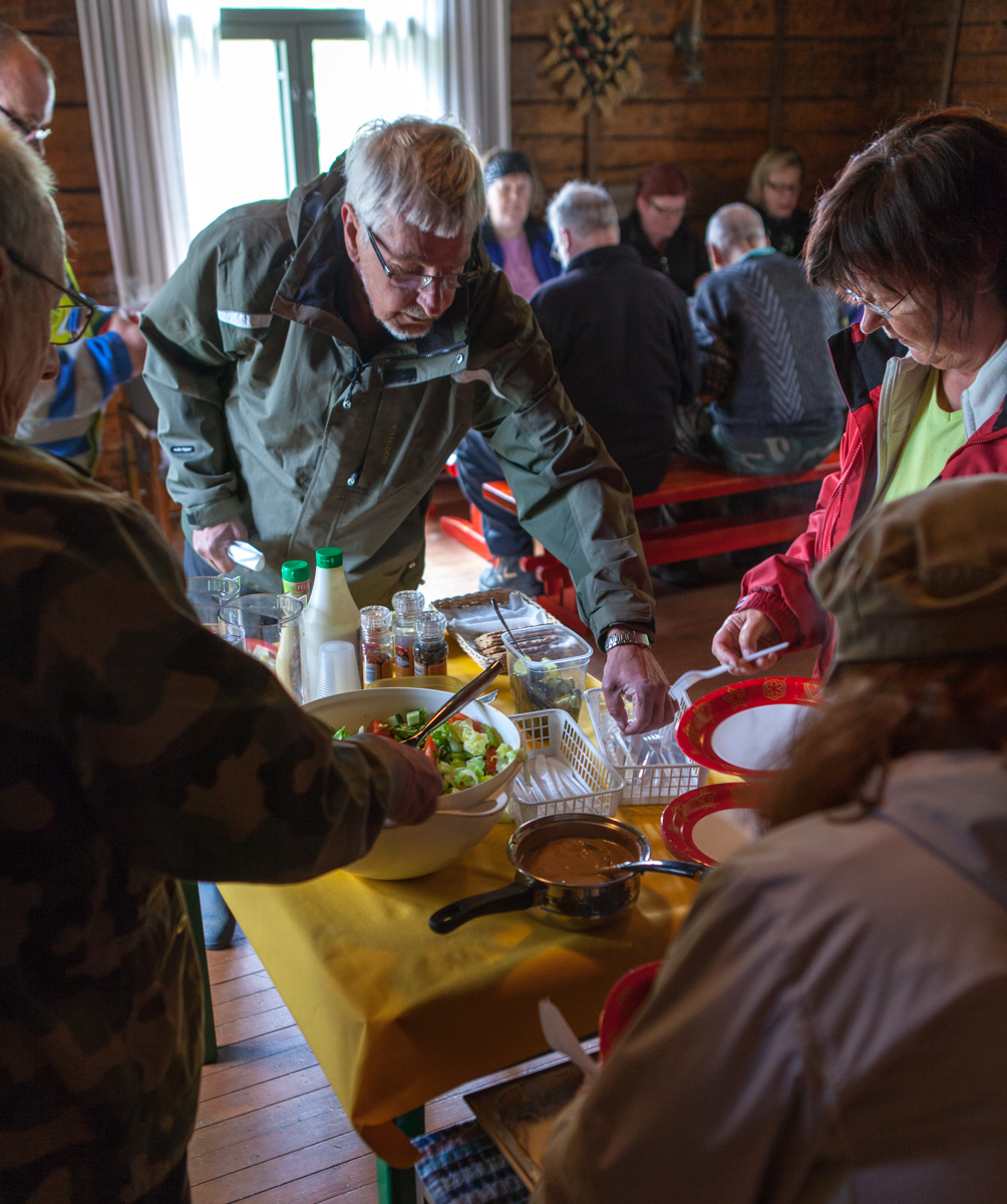 Kun Pirtti on siivottu onkin aterian vuoro. Ruoka on hyvää. Kyllä se ulkonahuhkimisen jälkeen maistuukin!
