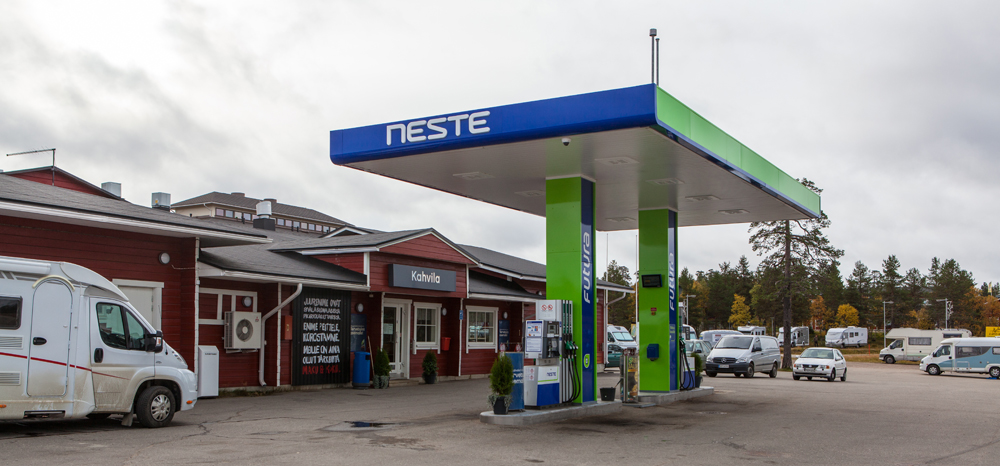 Neste Saariselän pihapiirissä on yhdeksän matkailuajoneuvopaikkaa sähköllä. Kolme sähköpaikkaa on takapihalla, loput edessä parkkipaikalla. 25 euron hinta ei ole matkaparkkien halvimmasta päästä mutta hintaa sisältyy karavaanareille tarkoitettu wc, suihku, veden täyttö sekä sähkö, jota voi talvella kulua runsaamminkin. Kemssan tyhjennys on käytössä vain kesäaikaan.