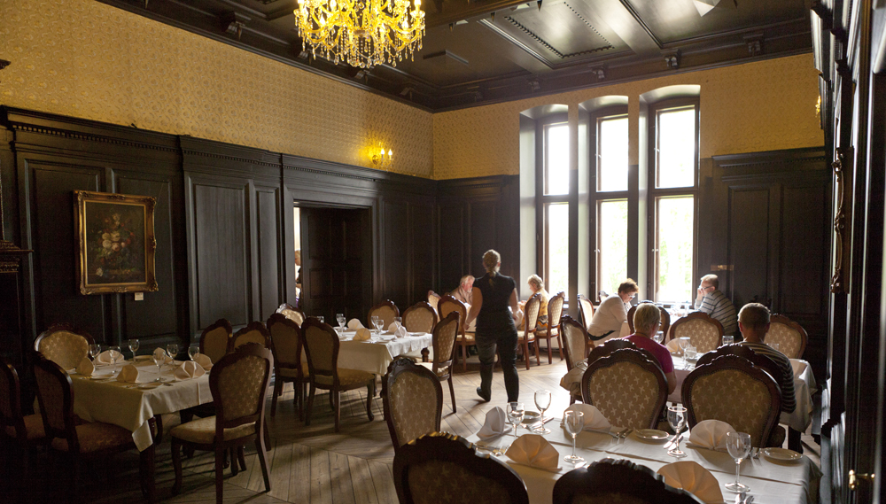 Alakerran suurimmassa salissa on hieno mutta kohtuuuhintainen ravintola.