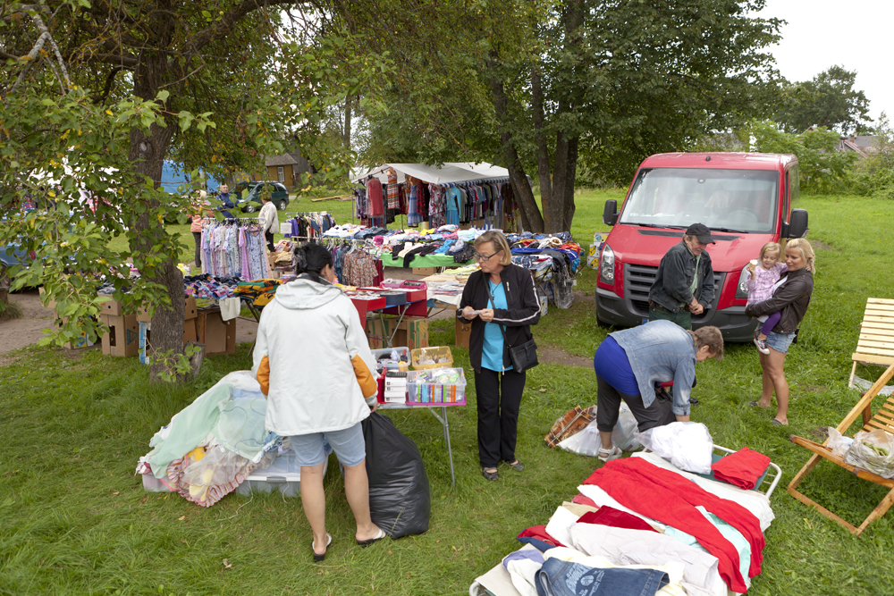 Saavumme Alatskiven kylään. Kartanon valtavan kivinavetan vierelle pystytetyltä kirpputorilta teemme seinänaulakkolöydön.