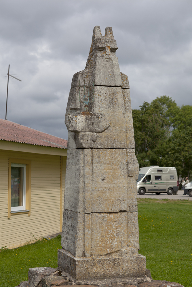 Satamaa vartioi kivinenn Ahti-patsas.