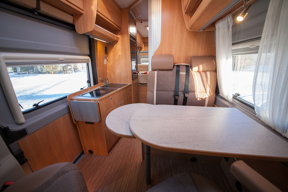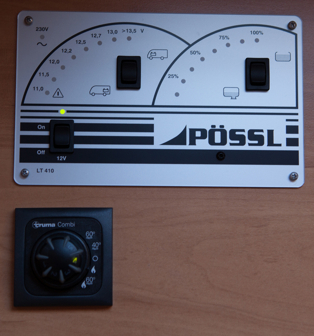 Lämmityslaitteena Pösslissä on Truma Combi 4, jonka neljän kilowatin teho riittää pakkasellakin. Koeajoyönä oli -15 astetta eikä lämmitin ollut läheskään täysillä. Lämpösuuttimia on riittävästi ja lämpö jakautuu tasaisesti.