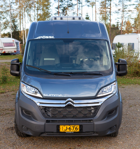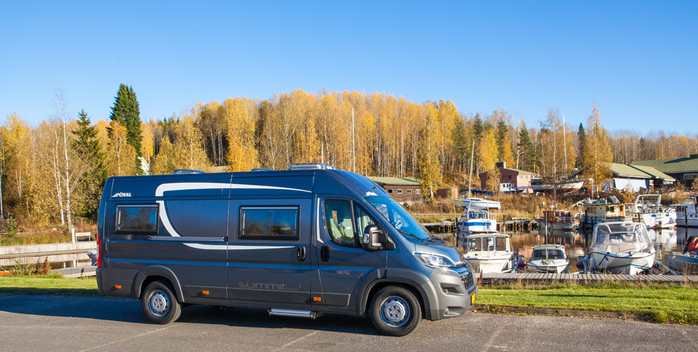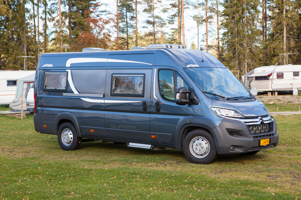 Pössl Summit 640 on parhaimmillaan pariskunnalla. Lapsikin mahtuu kyllä mukaan ja nukkumaan keskelle. Tehokkaalla moottorilla matka taittuu ripeästi.