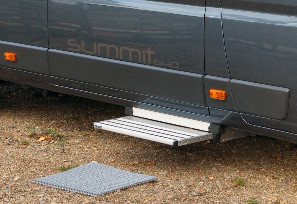 Ulko-oven porrasaskelma on sähkötoiminen ja se sulkeutuu kun moottori käynnistetään. Asuinosan liukuovessa on ns. softlock-lisävaruste. Ovea ei tarvitse paiskata kiinni vaan se vedettään kiinni kevyesti ja ovi sulkeutuu pehmeästi itsekseen. Kaikki ovet lukkiutuvat samalla avaimen kaukosäätimellä.