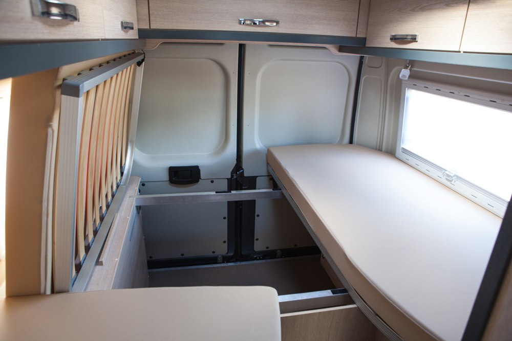 Koeajetussa Summit-mallissa on erilliset vuoteet takana pitkittäin. Vuoteiden väliin saa lisäpatjoilla kolmannen vuoteen lapselle.