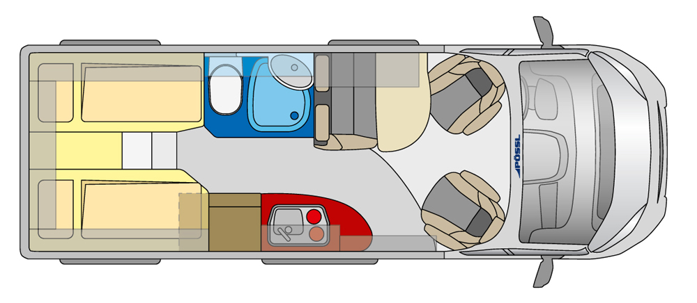 Saksalainen Pössl on erikoistunut peltikoristen matkailuautojen tuottamiseen. Niiden suunnittelussa on vankkaa kokemusta jo vuodesta 1989. Autojen sisustusratkaisuissa on alusta pitäen ollut hyviä oivalluksia.