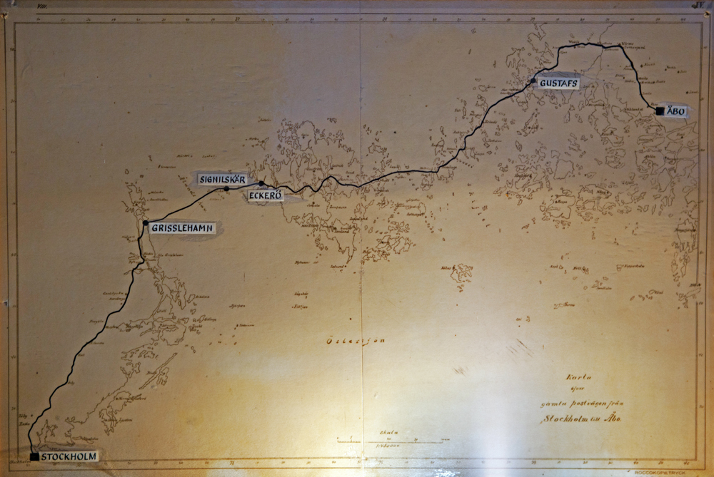 Ruotsin vallan aikana ei Eckerössä ollut vielä postikonttoria, vaan postin otti vastaan krouvari. Siitä eteenpäin posti kulki viestiketjun tavoin talonpojalta toiselle. Gölbyn ja Finbyn välissä oleva Kastelholman postiasema mainitaan vuoden 1668 Tukholman postitaksassa. Siitä posti kulki eteenpäin kohti Turkua.