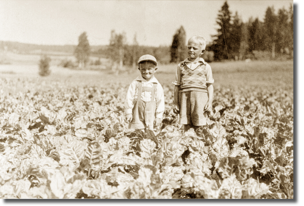 Kuva: Rehevää sokerijuurikaspeltoa Hannilan kylässä 1937. Tämä pelto sijaitsi isäni naapurissa. P.S. Hannilassa oli Osuuskassa, jonka johtokunnassa vaarini istui. Hannilan Osuuskassa toimii nykyisin Riihimäen Osuuspankkina.