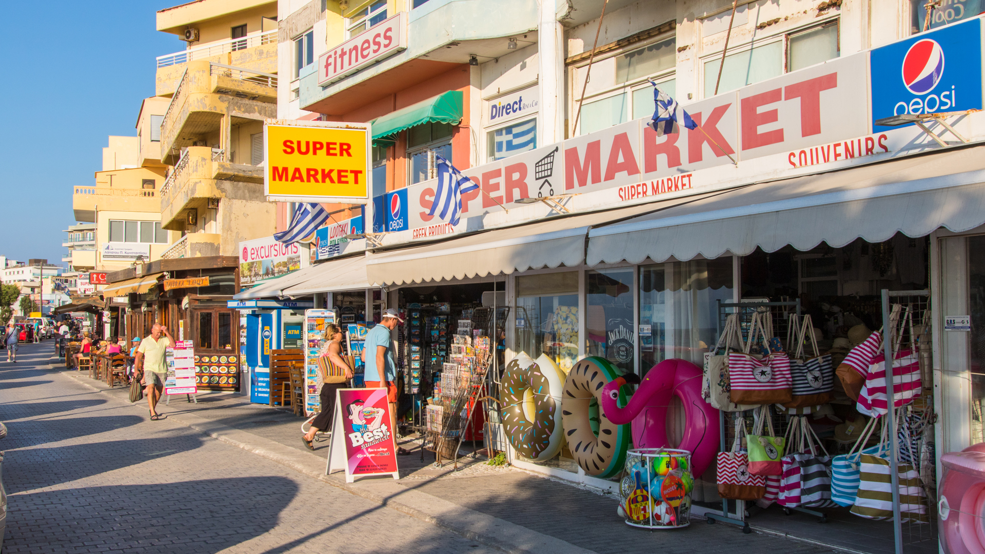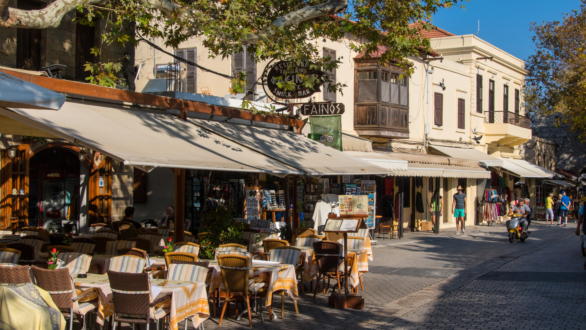 Vanahan keskusta läpi palatessamme mukaan tarttuu muutamia tuliaisia. Tarjontaahan täällä riittää. Eräässä kaupassa puhutaan suomea. Rodoksella onkin paljon suomalaisia, joista useat ovat töissä palvelu- tai matkailualalla. Suomalaisia kauppojakin on, mm. Jaakon Viinakauppa (vuodesta 1975) ja Suomalainen Vasilin Poika viinakauppa. Löytyy myös ”Systembolaget” ja Norske Baren.
