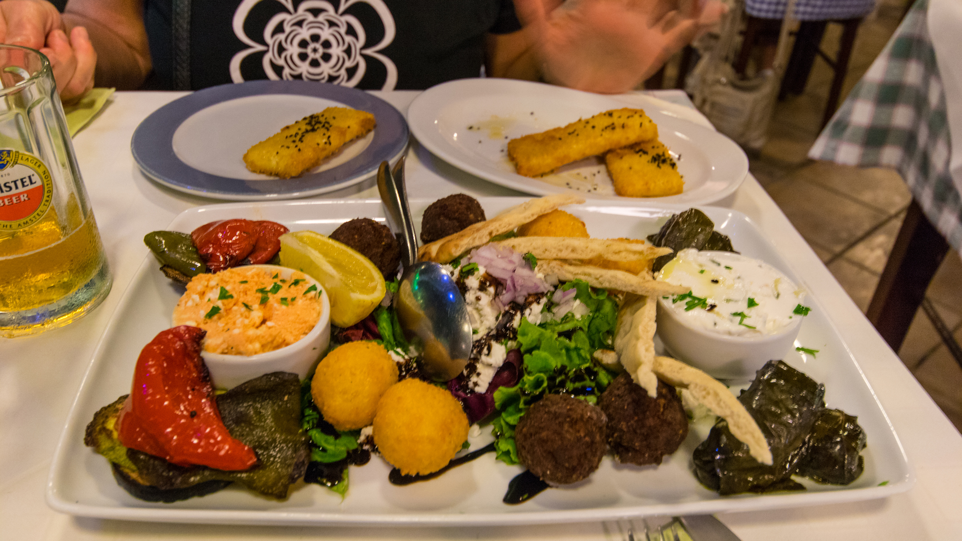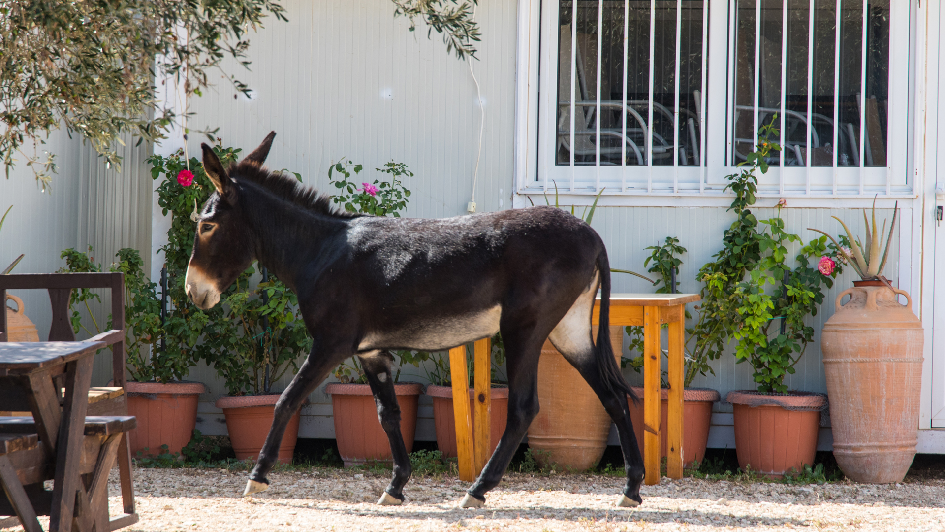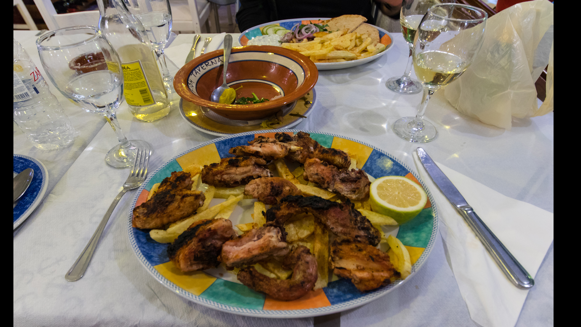 Paluumatkan teemme sisämaan vuoriston kautta. Poikkeamme virkistäytymässä Agios Isidoroksen kylässä. Ravintolassa ei ole muita turisteja. Vain kissa ja neljä paikallista harmaapäistä ukkoa juomassa olutta ja ouzoa.