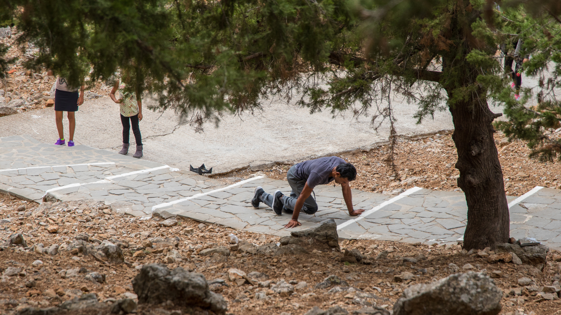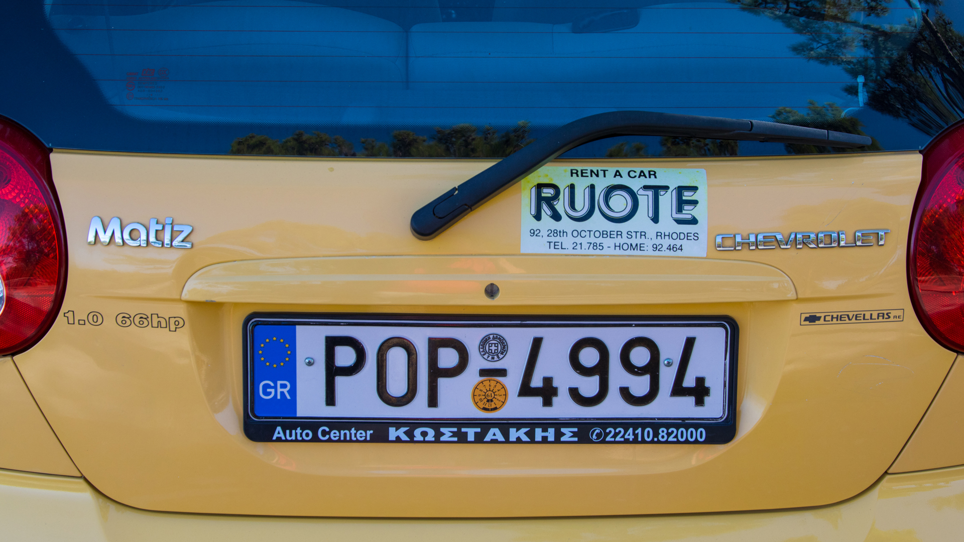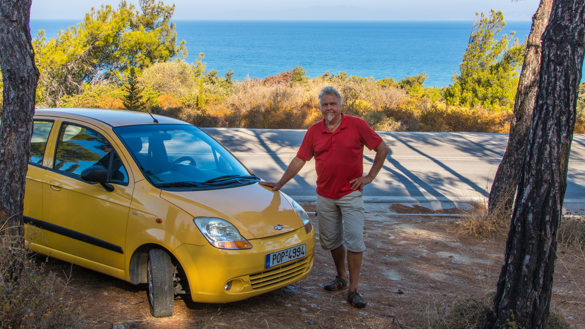 Puolessa välissä viikkoa vuokraamme hotellin naapurista auton, pienen keltaisen Chevrolet Matizin. Edullinen auto jossa 1.0-litraisessa moottorissa on tehoa kokonaista 66 hv. Ajamme aamulla länsirantaa myötäillen kaakkoon n. 30 km päähän Kameirosiin. Läheltä merenrantaa loivasta rinteestä kaivettiin esiin antiikin ajan kaupunki ja lisää arkeologista työtä tehdään kaiken aikaa.