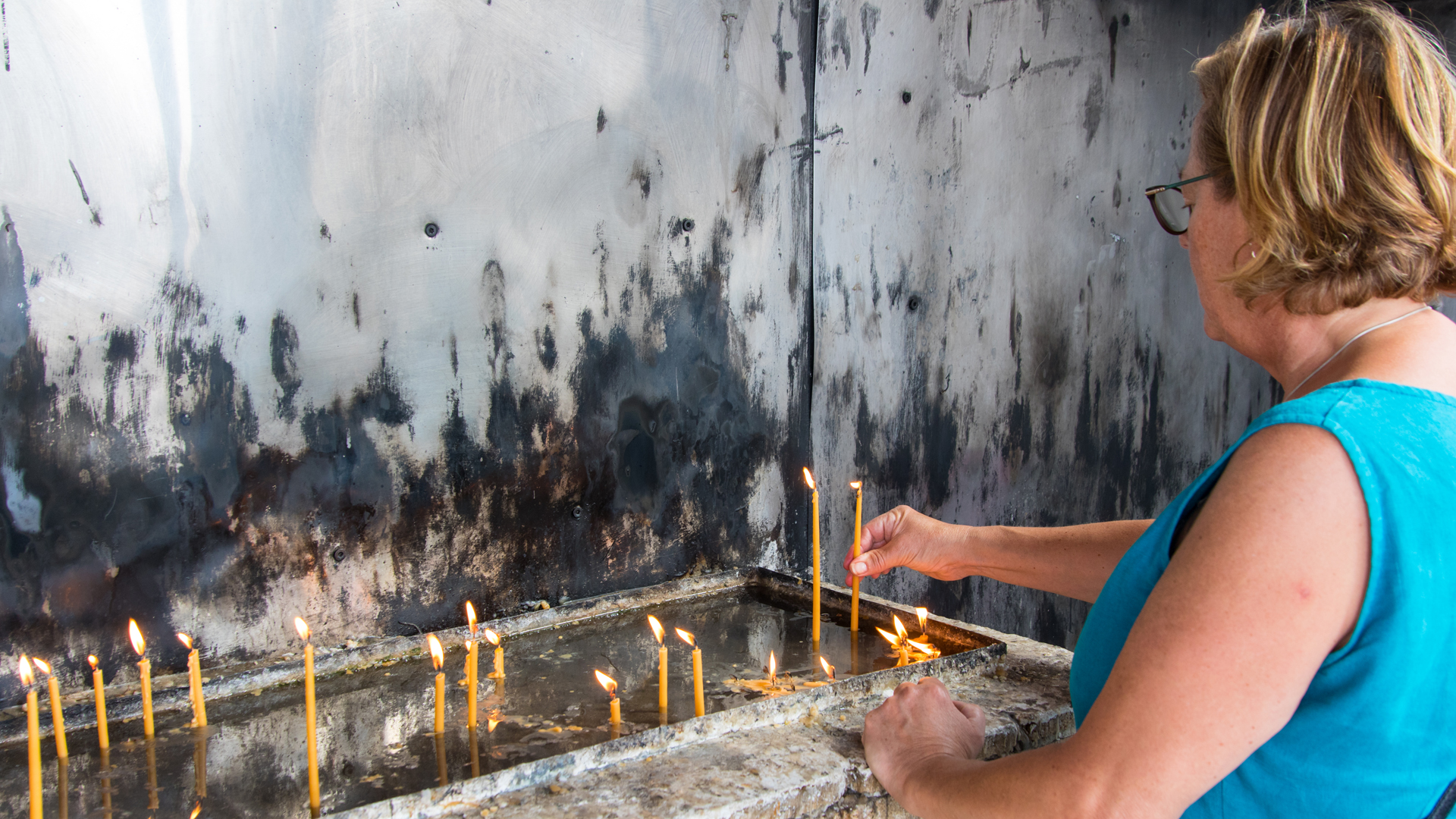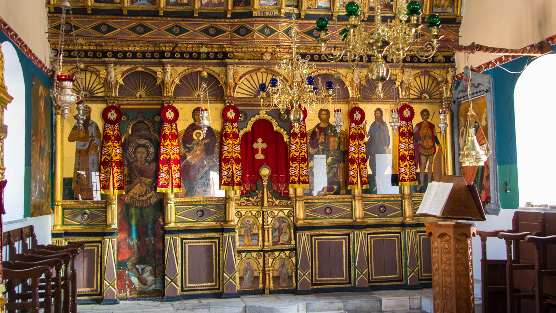 Osumme Artamitin luostarille, josta on juuri aasi karannut. Paikalla on hyvin englantia puhuva nainen, joka esittelee meille kaunista kirkkoa.