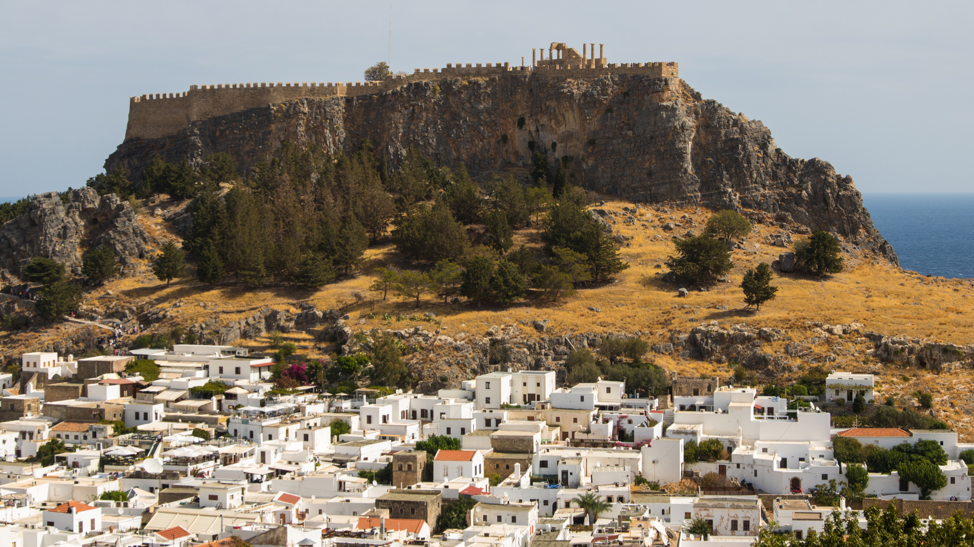 Toinen autoretkemme suuntautuu itärannikolle. Agios Aimilianosin niemellä Marmarivuoren kupeelle kiipeilee pieni Lindoksen kaupunki. Antiikin Lindos perustettiin 900-luvulla eKr. Se on yksi kolmesta saaren antiikinajan kaupungista, Ialysoksen ja eilen vierailemamme Kameiroksen lisäksi. Noilta ajoilta on peräisin Lindoksen viereiselle kukkulalle rakennettu linnavuori, Akropolis-kukkula. Bysanttilaisen keskiajan ja Johanniittain ritarikunnan aikana (n. 1300 – 1500) kukkulaa linnoitettiin jälleen laajalti. Linnalle johtaa kylältä 200-askelmainen portaikko.