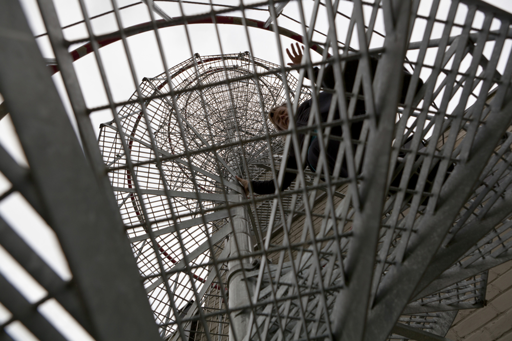 Tornin ulkoseinällä on kierreportaat huipulle.