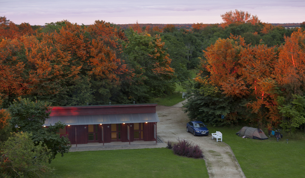 Kentän pohjoisreunassa on rivitalomainen leirintämökkirakennus. Kuudessa huoneessa on yhteensä 14 makuupaikkaa.