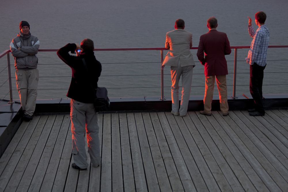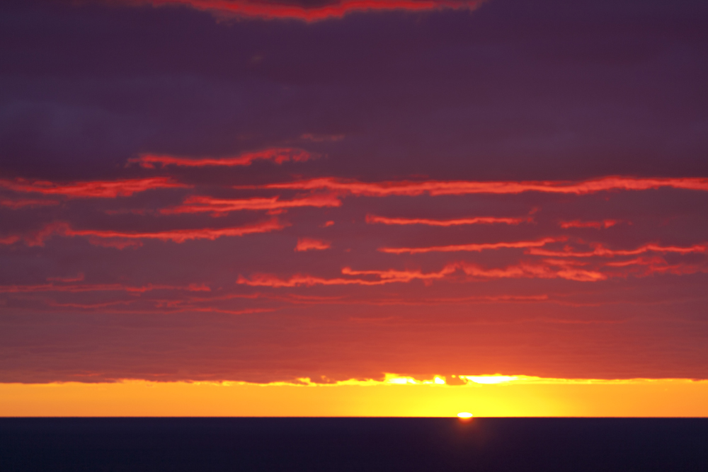 Ylhäällä ihailemme muutaman keski-eurooppalaisen kanssa upeaa iltataivasta auringon painuessa Suomenlahteen.