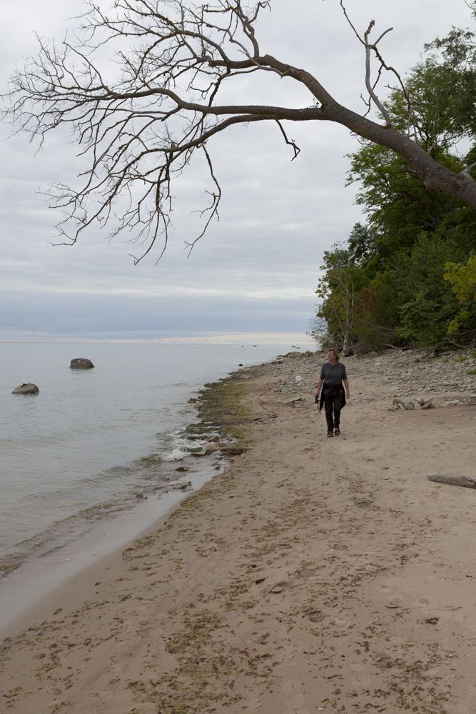 Alhaalla odottaa hieno hiekkaranta, jota raidoittavat useat purot. Rannalta löytyy myös rapakiveä ja hienoa sinisavea.
