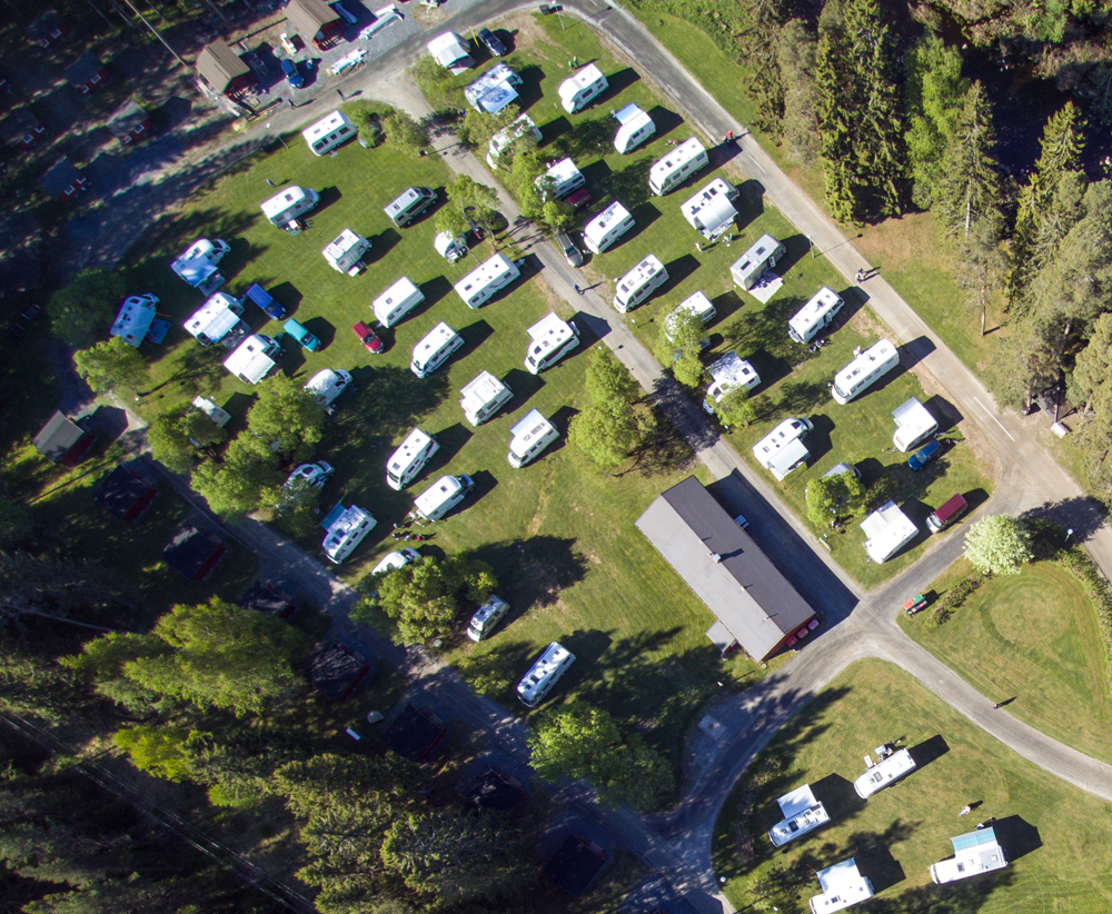 Karavaanareille on alueen toisessa päässä on suuri nurmikenttä, jota rytmittää muutamat puut ja pensaat. Tilaa löytyy noin sadalle matkailuajoneuvolle. Sähköpaikkoja on 68.