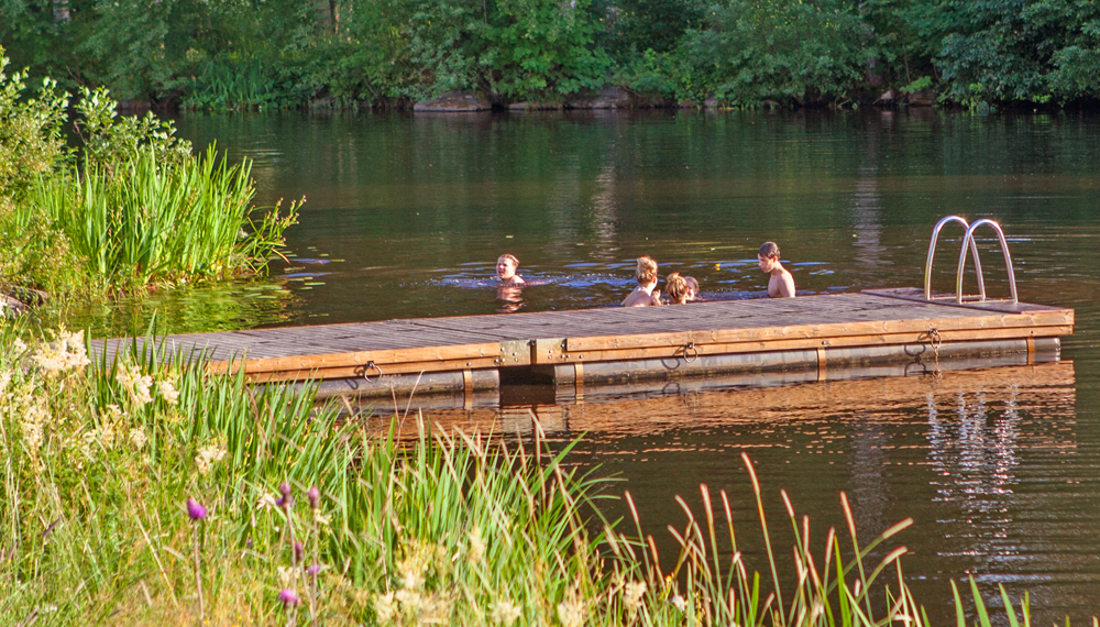 Portin puoleisessa päästä löytyy keväällä 2019 valmistunut tilaussauna, sekä kokoustilat. Saunan ja uimalaiturin välissä kulkee leirintäaluetta halkova yleinen pyöräily- ja kävelytie mutta se ei itse uimista haittaa. Nakuna saunasta ei kuitenkaan veteen kannata singahtaa. Kaupungin uimarantoja löytyy alueen läheltä kaksi, toinen joen yläjuoksulta, toinen alajuoksun suunnalta.
