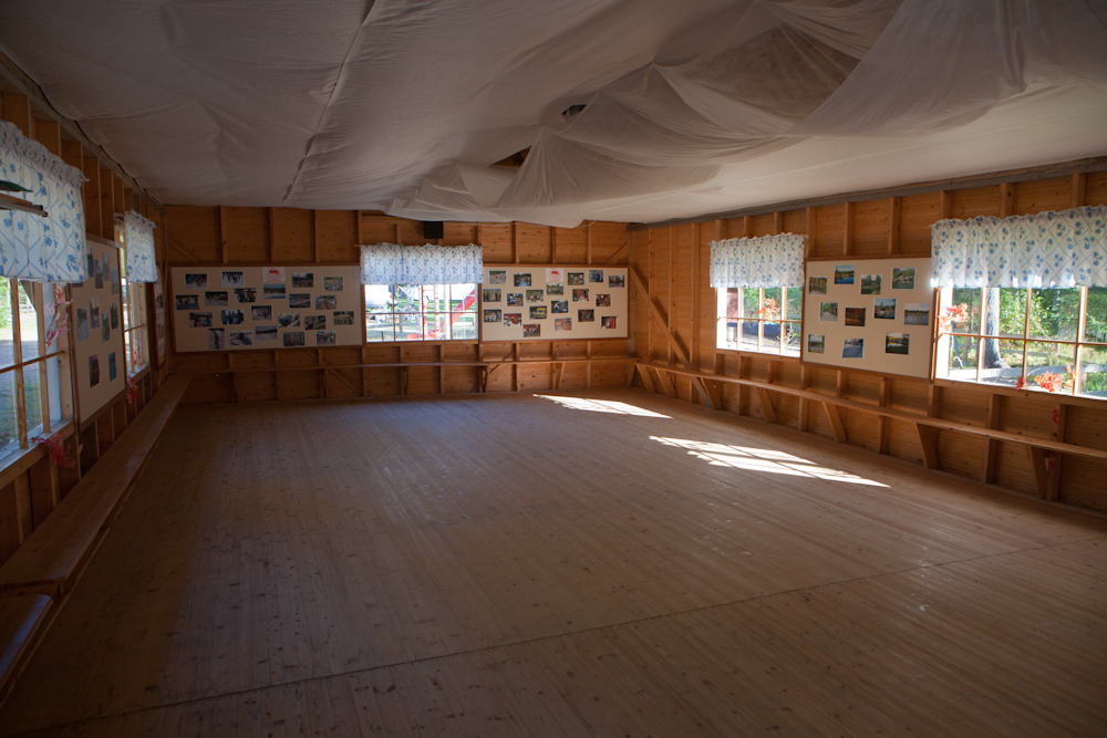 Huoltorakennuksen takana on puu- ja työkaluvarastoja sekä pienempi kokoontumistila jossa on myös keittiö.