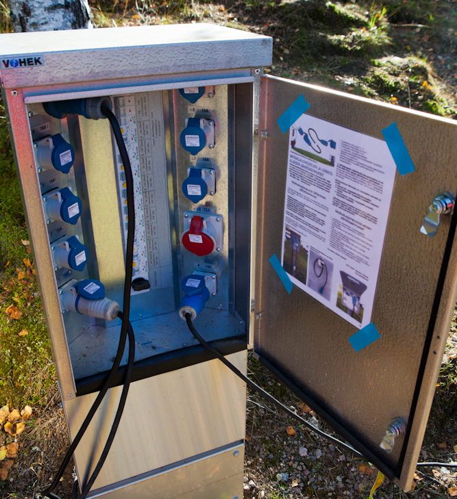 Keskemmällä aluetta on suurempi huoltorakennus, jossa on vessat, suihkut ja tiskauspaikka sekä kemssahuolto. Vessoja rakennetaan lisää kesäksi 2016.