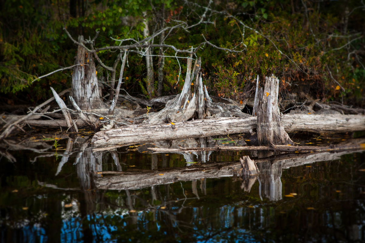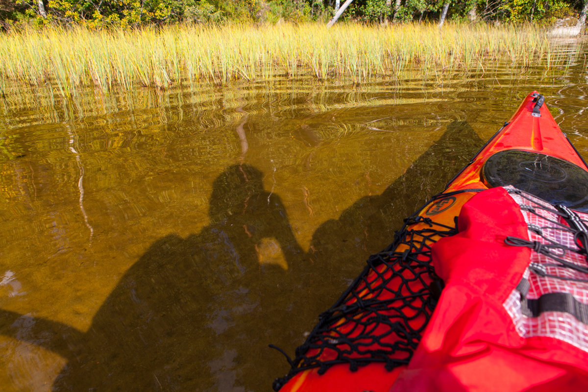 Säät ovat syyskuun alulle harvinaisen lämpimät. Myllyjärvi kimaltelee aivan tyynenä ja teemme ensimmäisenä päivänä pitkän melontaretken ympäri järven erämaisia rantoja, sen pieniä saaria ja kivikoita kierrellen.