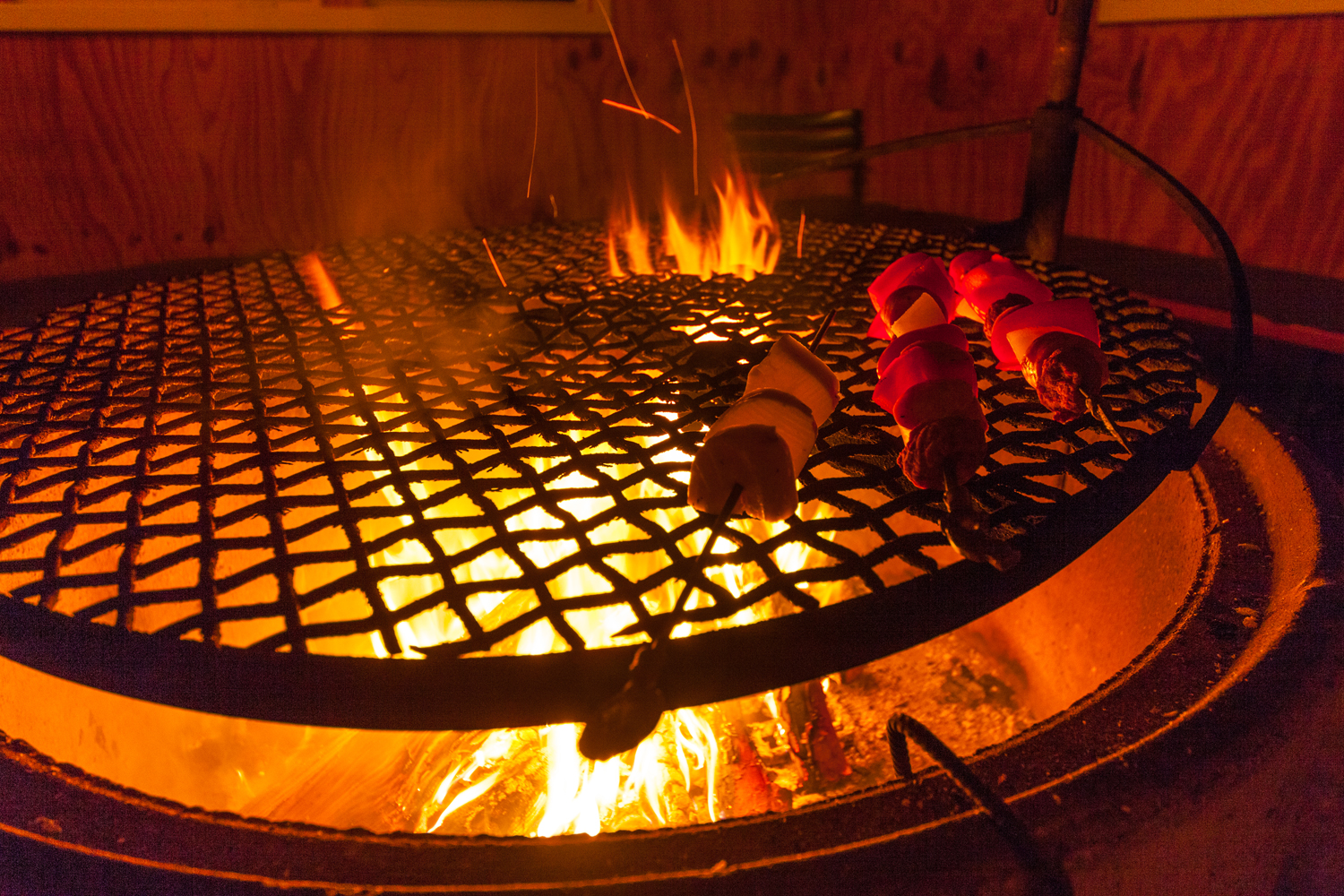 Seuraavana iltana testaamme Mylly-Mäkelän grillimökin, kodaksikin kutsutun. Hyväksi havaitsemme. Kota on tilava ja grilli toimii erinomaisesti, savua ei tule sisään. Iltaa istumaan mahtuu helposti 15 henkeä ja grillissä on isot ritilät.