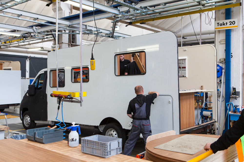 Kun Capron, Caravan Production Neustadt aloitti toimintansa, otettiin valtavista halleista käyttöön 20 000 neliömetriä. Työntekijöitä oli aluksi 60.