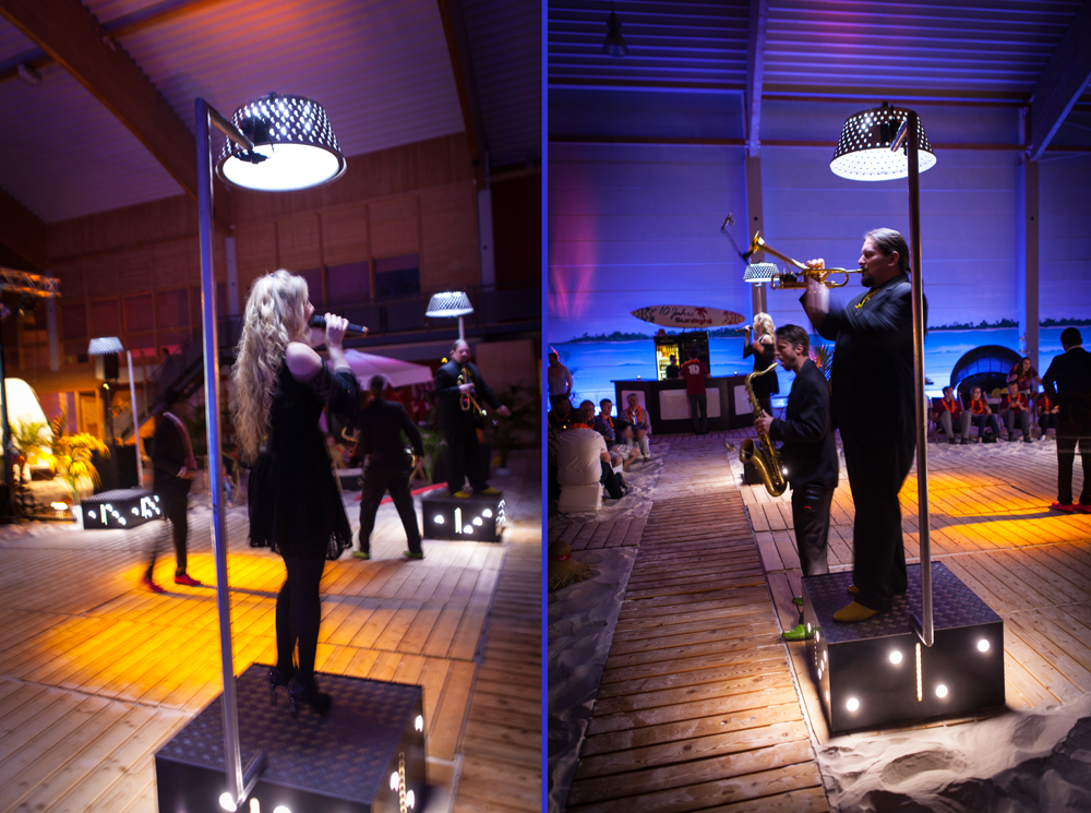 Sunlightin tyyliin juhlat olivat nuorekkaat. Beach Volley harjoitushallissa, jossa on puolimetriä hienoa hiekka lattian peittona, oli Tropical Party. Tarjolla oli erilaisia ”etelän hetelmiä”, sekä kiinteässä että nestemäisessä muodossa.
