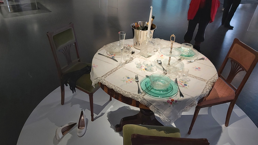 Samppanjapullollakin on näyttelyssä paikkansa. Nanny Still nautti mieluusti aamiaisillaan lasillisen kuohuvaa.