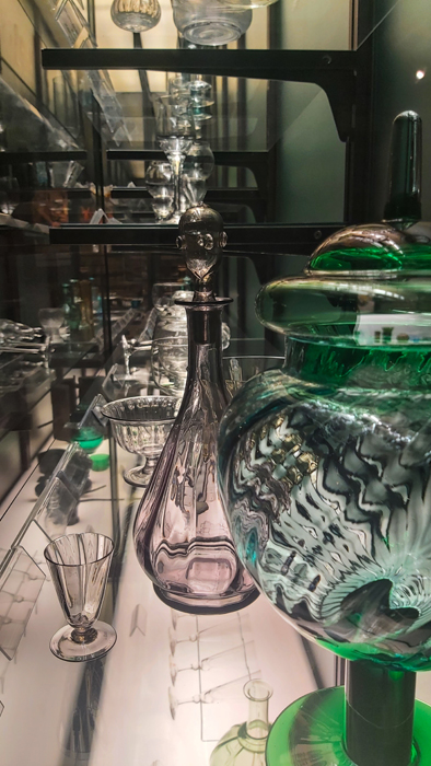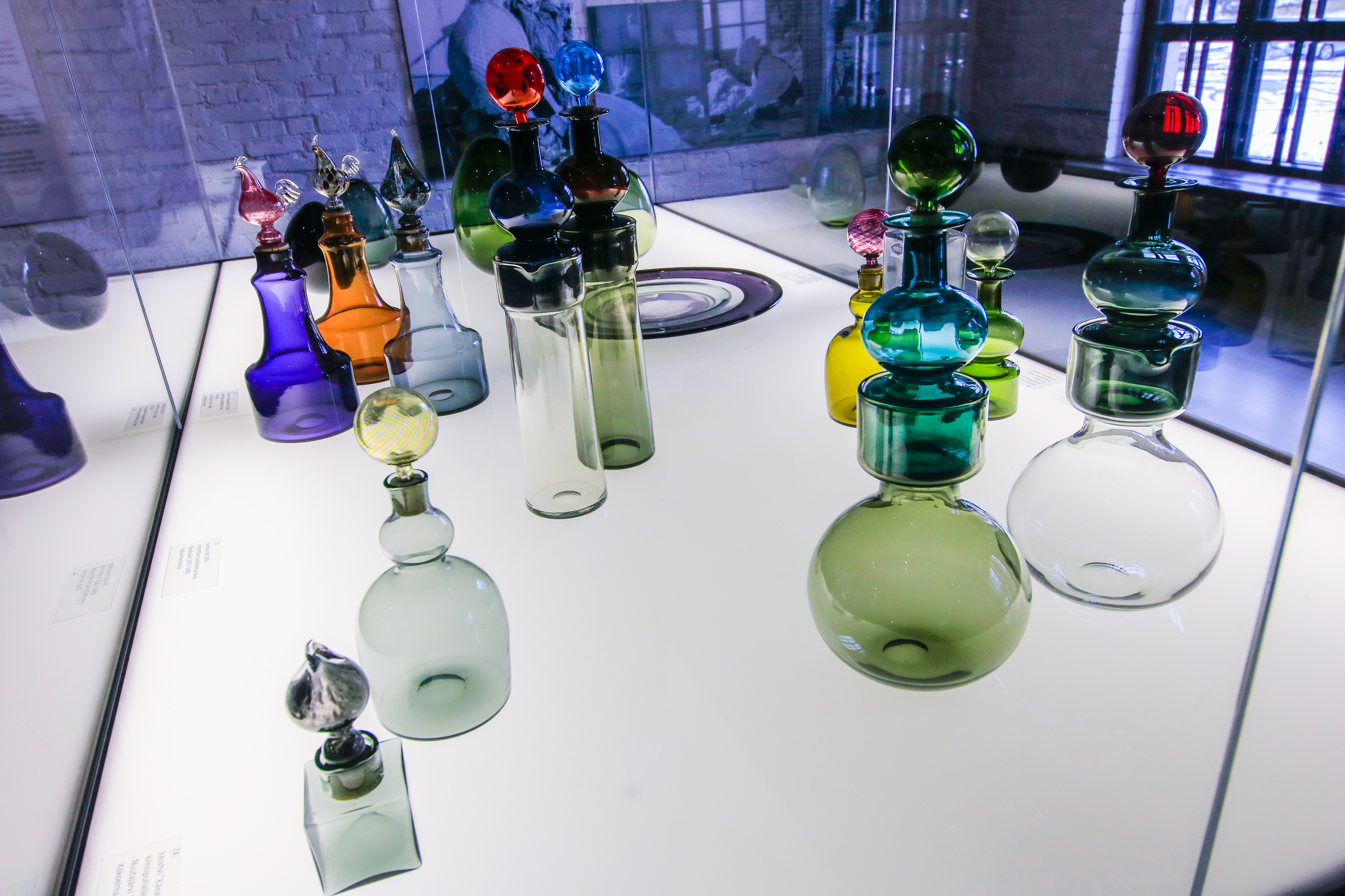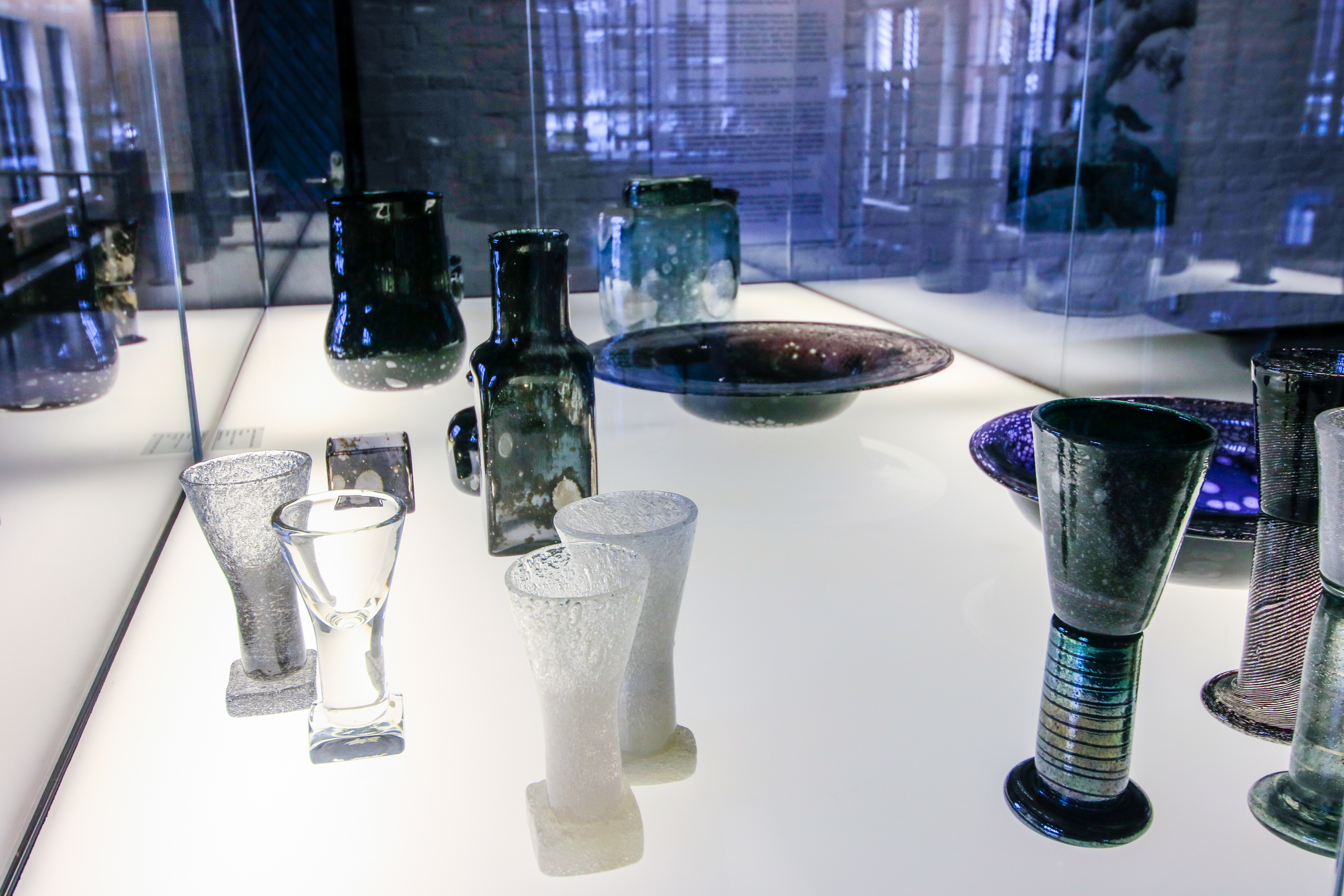 Pohjakerroksen perusnäyttelyssä esitellään lasin historiaa maailmalla.