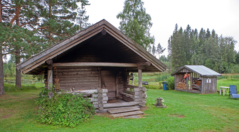 Savusaunarakennus on koottu järeistä hirsistä. Lampien välissä on pieni mäenkumpare, jonka kupeella huolto- ja saunarakennus sijaitsee. Mäen nyppylän huipulla on grillikota, jota pääsee käyttämään kohtuullista masua vastaan. Hintaan sisältyvät polttopuut.