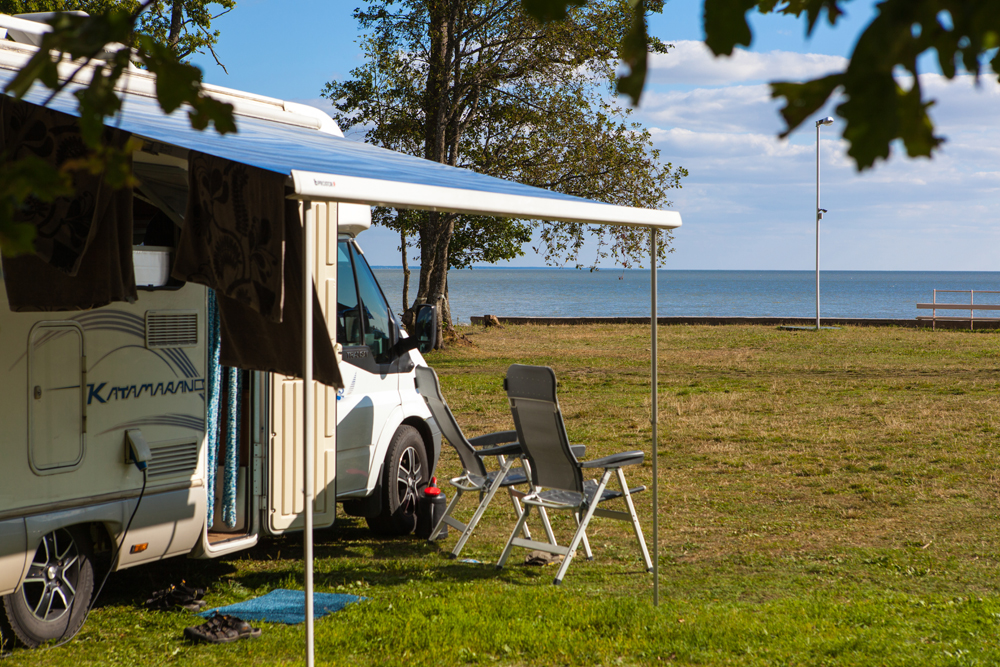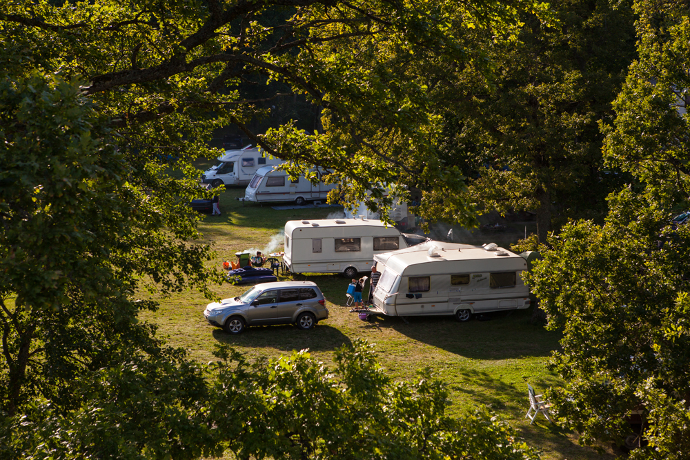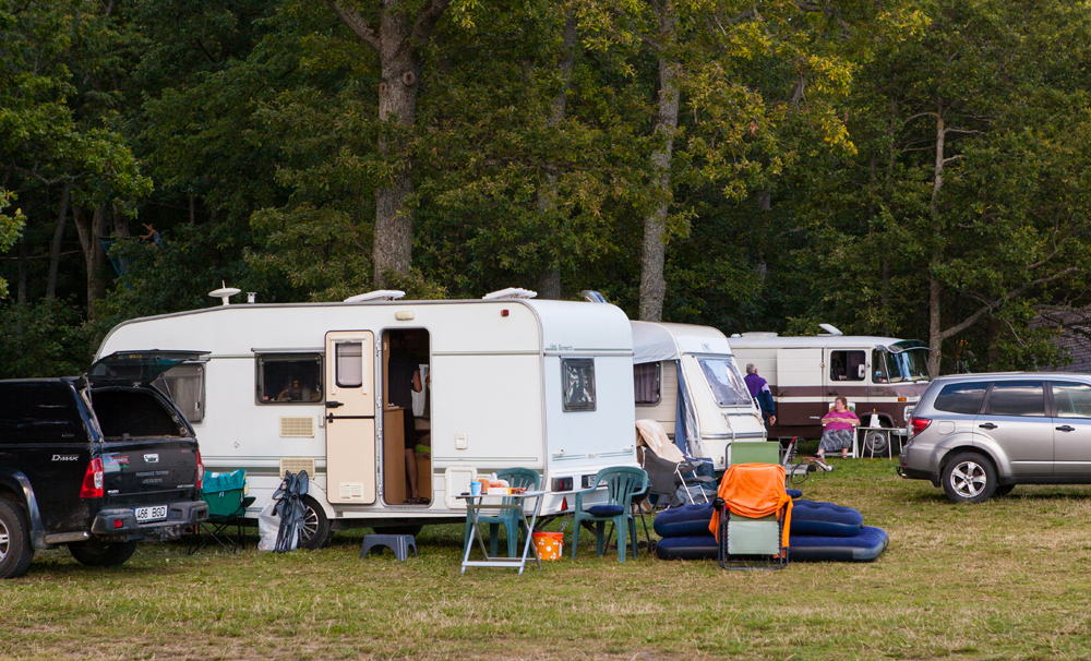 Matkailuajoneuvopaikkaa valitessa kannattaa katsoa mistä tuulee. Paikallisilla telttailijoilla on tapana käryttää iltakaudet nuotiota tai hiiligrilliä.