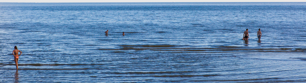 Ranta on matalaa ja uimaan saa kahlata.