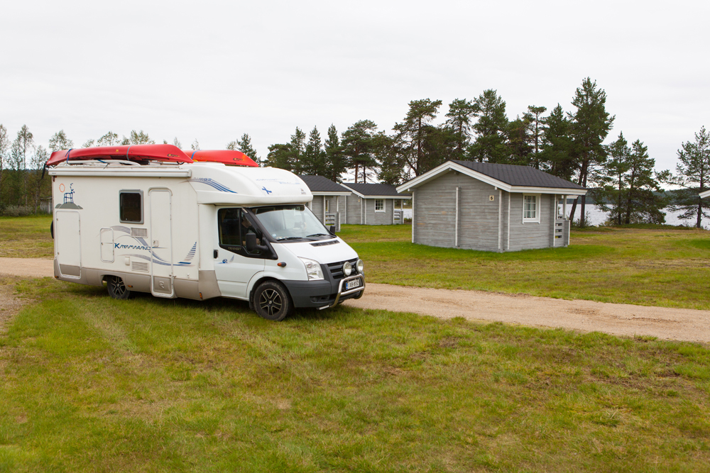 Pihapiirin hirsimökkien tuntumasta löytyy myös omaa kenttää karavaanareille ja telttailojoille. Heille on myös oma keittokatos. Sähköliitäntöjä matkailuajoneuvoille on kymmenen, paikkoja yhteensä n. 25. Kemialliselle vessalle löytyy tyhjennyspaikka.