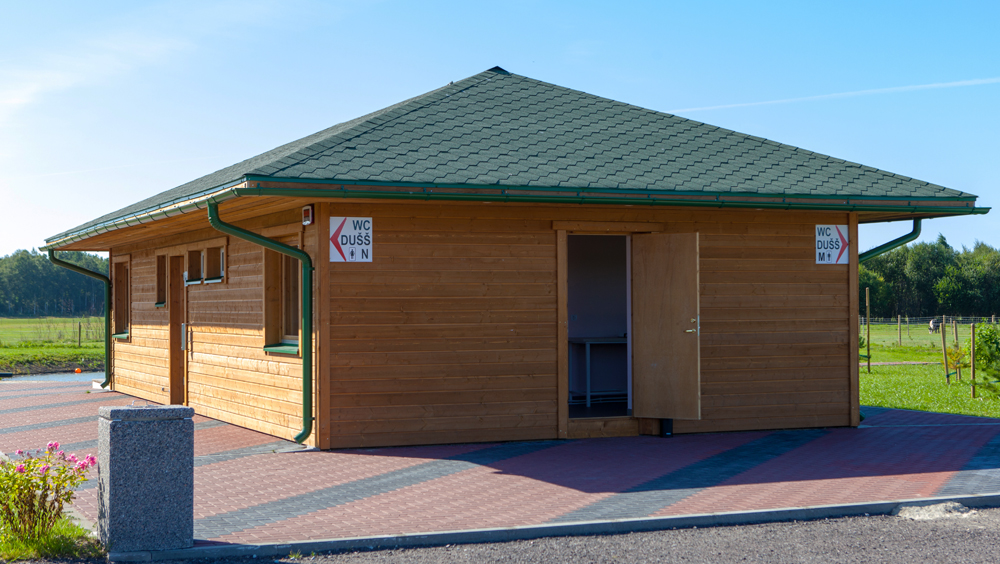 Uudessa huoltorakennuksessa on vessat ja suihkut.