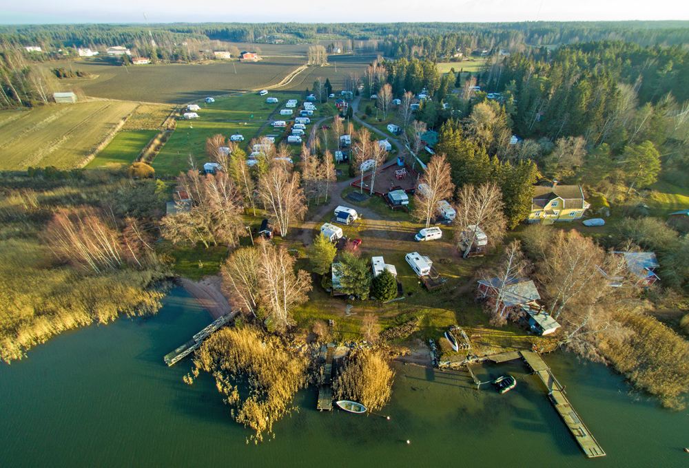 Toinen alue on rannassa lähellä saunoja, uimarantaa ja aidattua leikkipuistoa – erinomainen paikka lapsiperheille. Ranta-alueelta löytyy paikkoja vierailijoille.
