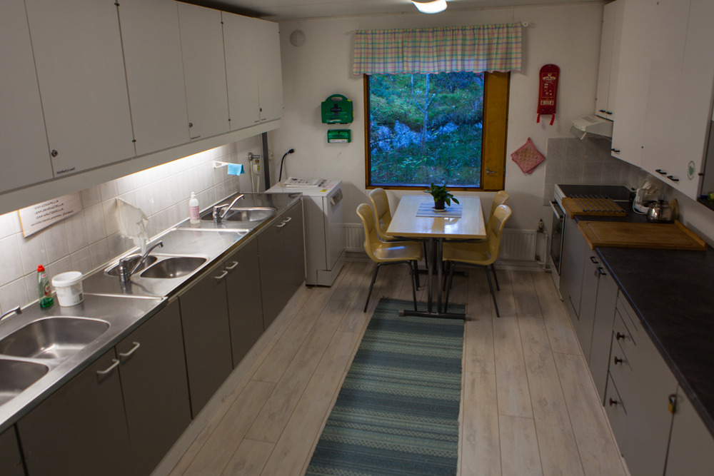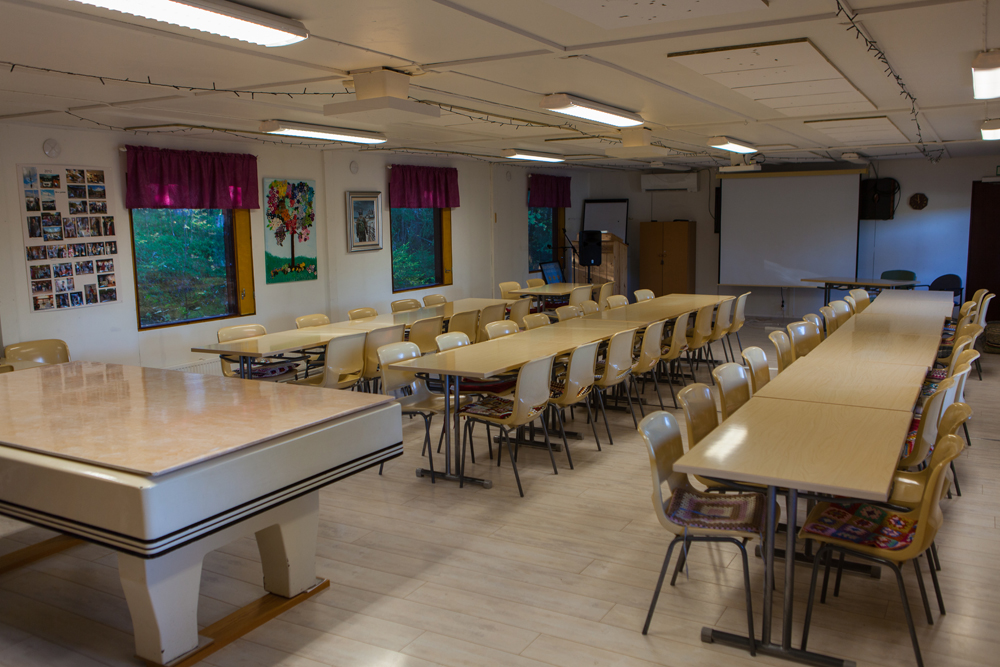 Alueen suurimmasta rakennuksesta, joka on sijoitettu keskeisesti rinteeseen, löytyvät huoltotilat. Siellä on keittiötilat, pyykinpesukone ja kuivuri. Suuri sali sopii kokouksiin ja vapaa-ajanviettoon, kuten biljardinpeluuseen. Huoltorakennuksesta löytyvät myös wc- ja suihkutilat sekä kemssan tyhjennyspaikka.