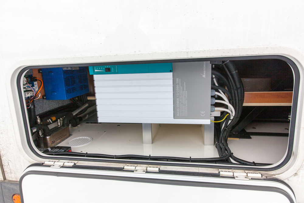 Kaikille astioille ja omat lokeronsa. Tavarat eivät hölsky ja helise ajon aikana. Muutenkin auto on erikoisvarusteltu. Lämmityslaitteena on Alde nestekierrolla. Lämpöpattereita on vakiomallia enemmän. Lämpö jakautuu tasaisemmin ja lämmitin on päällä pidempiä jaksoja kerrallaan eikä poksu edestakaisin.