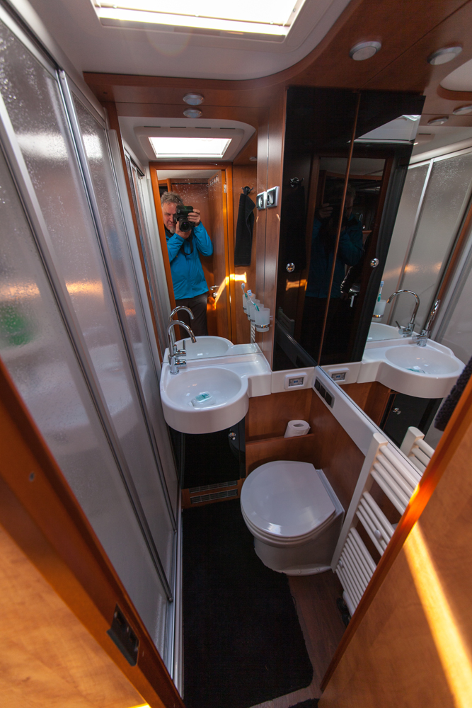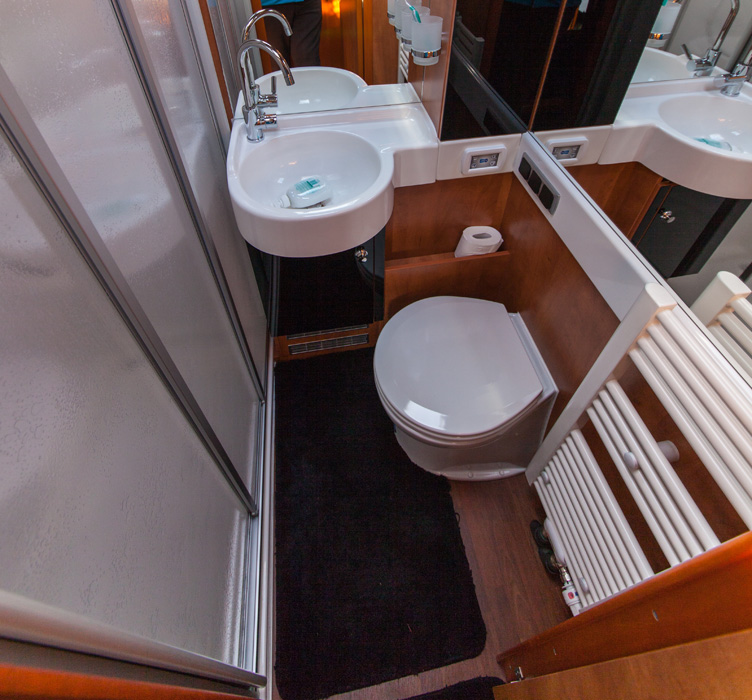 WC-suihkutilan patteri on pakkosyötöllä aina päällä pitäen tilan kuivana ja hiukan muuta autoa lämpimämpänä. Lämmin neste kiertää pyyhkeidenkuivaustelineessä. Lämmityslaitteen teho on kaasulla 5 kW, lisänä on sähköpatruuna 3 kW.