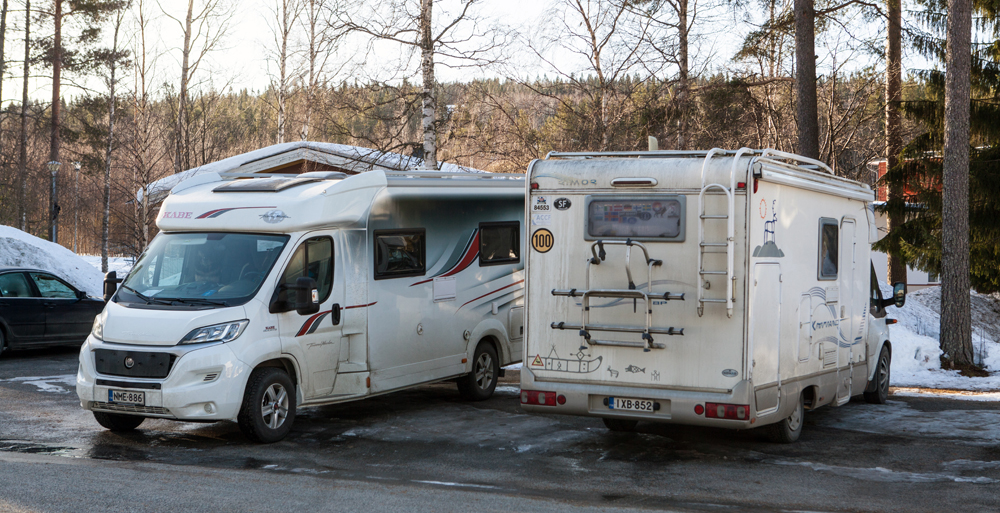 Karavaanareillekin löytyy viisi vakituista sähköpaikkaa ja näiden lisäksi sähköä järjestyy tarvittaessa muualtakin. Myös mökeistä saa sähköä matkailuajoneuvoon ja joskus on mukava yöpyä vaihteeksi mökissäkin.