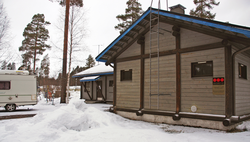 Siistit huoltotilat löytyvät vaunualueen keskeltä höylähirsisetä rakennuksesta. Aiemmin huoltotiloja oli myös Rinneravintolan yhteydessä.