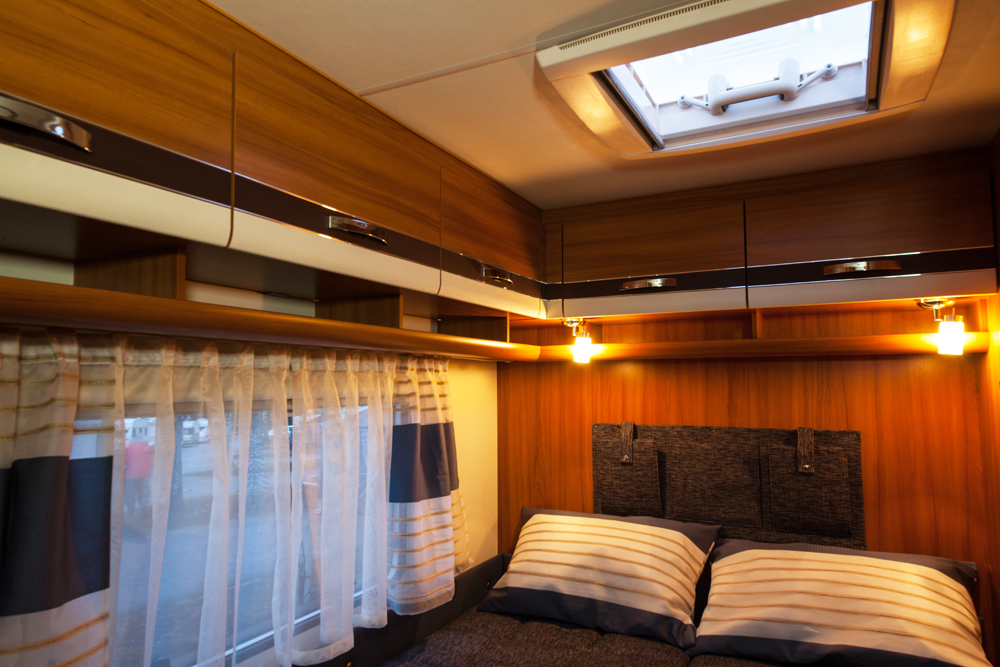 Perän makuutilassa on kiinteä parivuode pitkittäin. Tavaratilasta johtuen vuoteen korkeus kuitenkin 80 senttiä, lyhyelle ihmiselle hieman korkea.