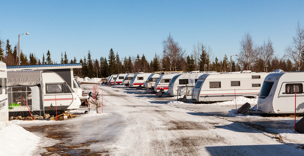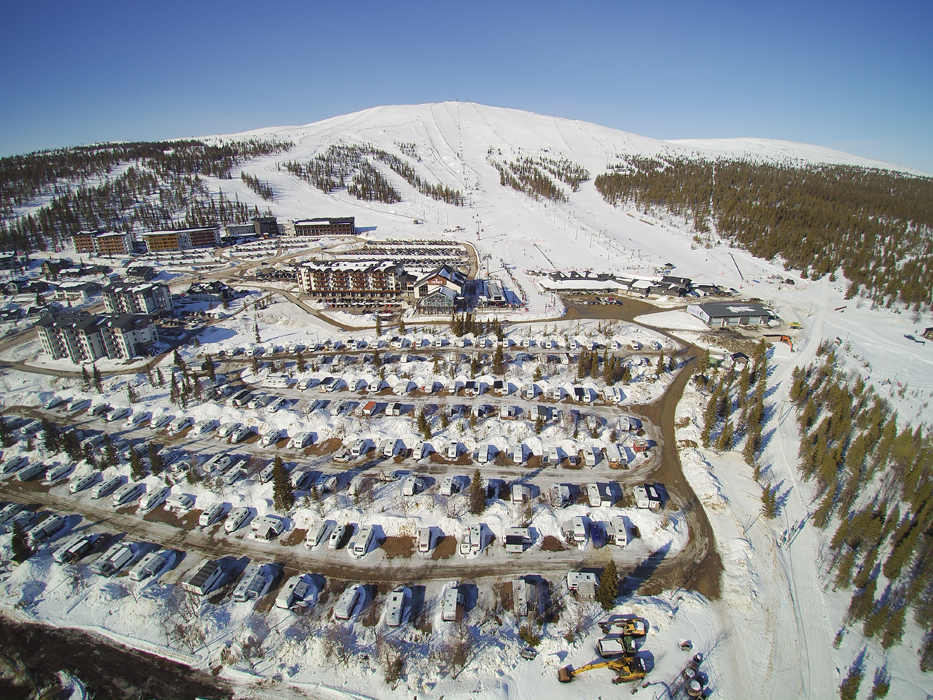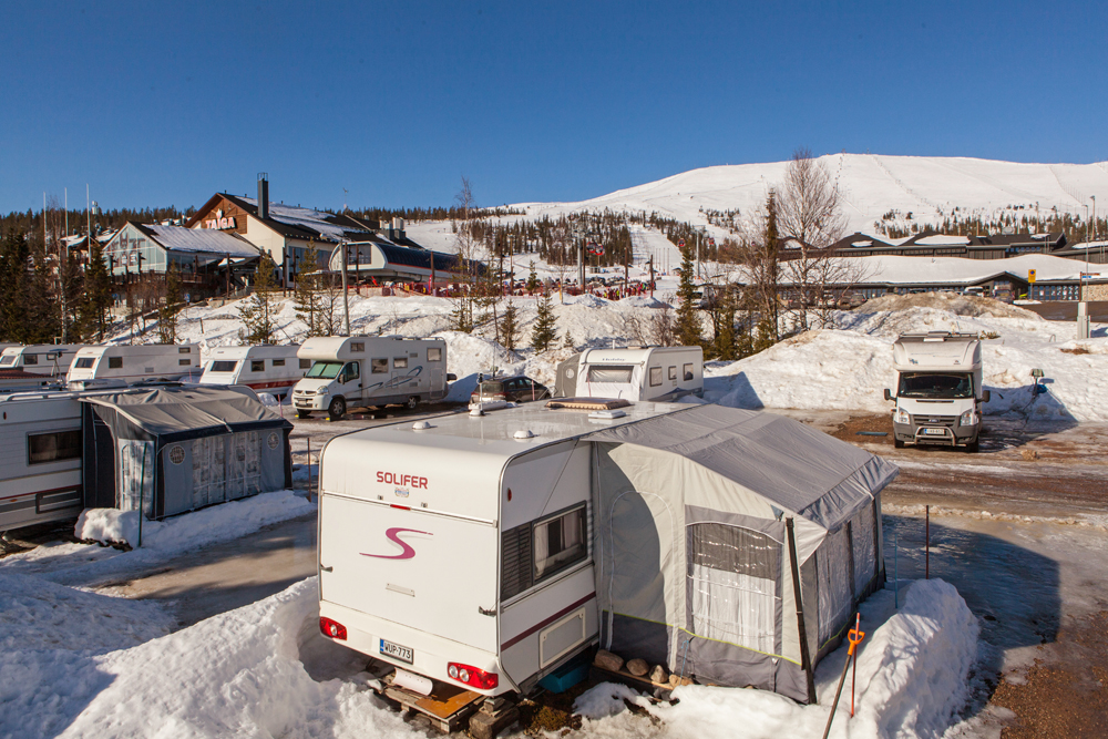 Suurin osa caravan-alueen tonteista on kausipaikkalaisten hallussa mutta vieraspaikkojakin pidetään aina jonkin verran. Kausipaikkalaisille on sallittu puiset ”etuteltat” mutta ne ovat kaikki siirreltäviä eli niissä on pyörät alla. Kunnollinen eristetty tila onkin tunturissa mukava. Tosin ylhäällä tunturin rinteessä voi olla helposti kymmenen astetta vähemmän pakkasta kuin laaksoissa.