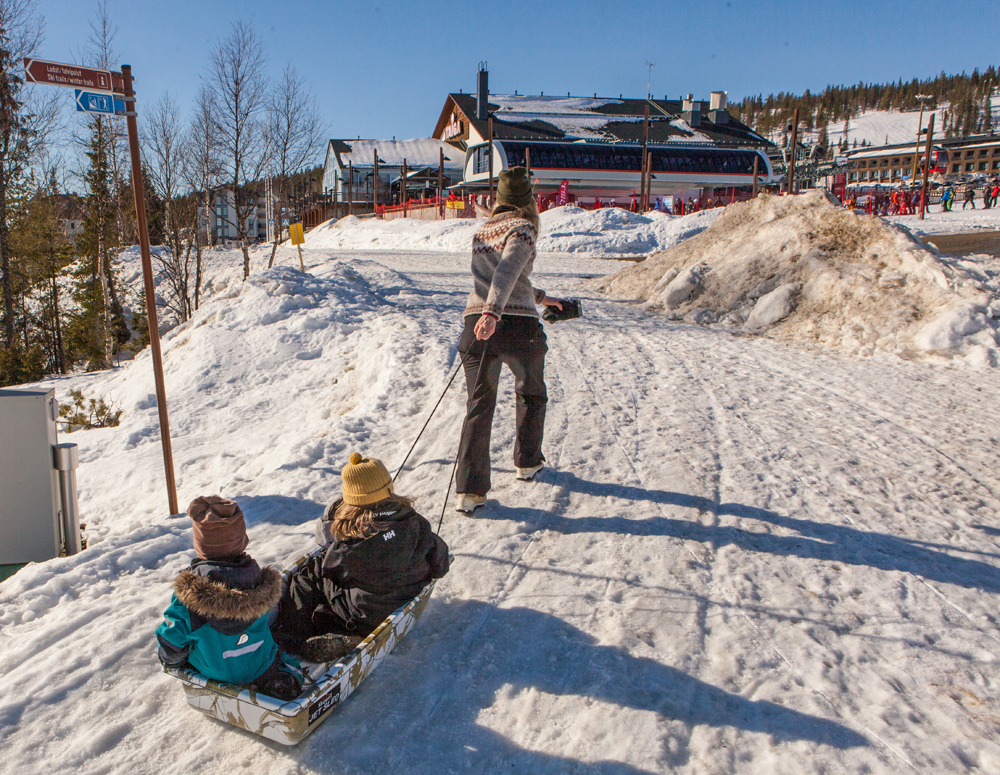 Ladullekin Ylläs Ski Resortista on helppo lähteä. Perinteinen latu ja luistelubaana kulkevat aivan vaunujen vierestä ja latuverkosto on laaja. Moottorikelkkareitistökin on valtava, voisi sanoa koko Lapin kokoinen!