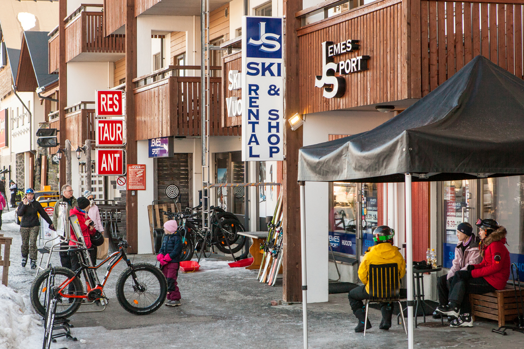 Caravan-alueen ja rinteiden välissä on Taiga-liikekeskus, jossa on rivissä kahvilaa, ruokaravintolaa, pubia ja hampurilaispaikkaa sekä urheiluvälinekauppaa. Lähistöltä löytyy Mini-Market sekä hotellien ravintoloita. Saaga-hotellissa on myös allasosasto ja allasbaari.