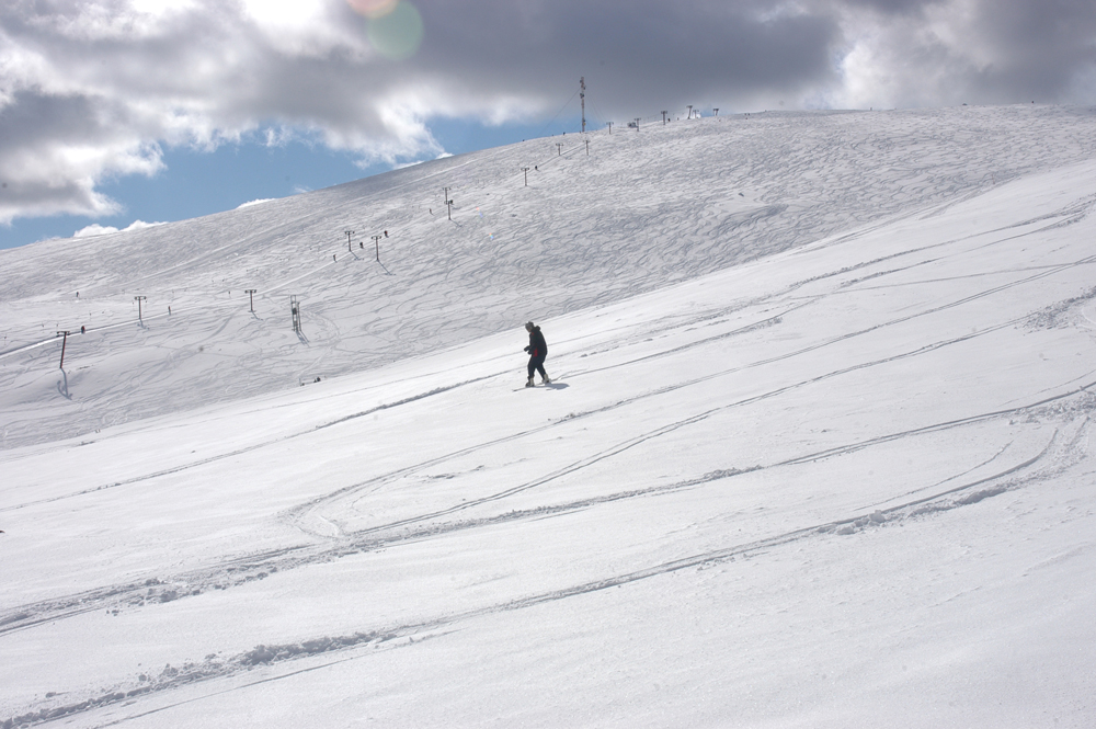 Kun lääkäriasema on tiedossa, voinkin suunnata mäkeen. Caravan-alueen vieressä olevalla gondolihissillä on joskus pitkät jonot mutta isot gondolit vetävät nopeasti. Ylhäällä rinteet haarautuvat sitten moneen suuntaan eikä ole välttämätöntä laskea alas asti.
